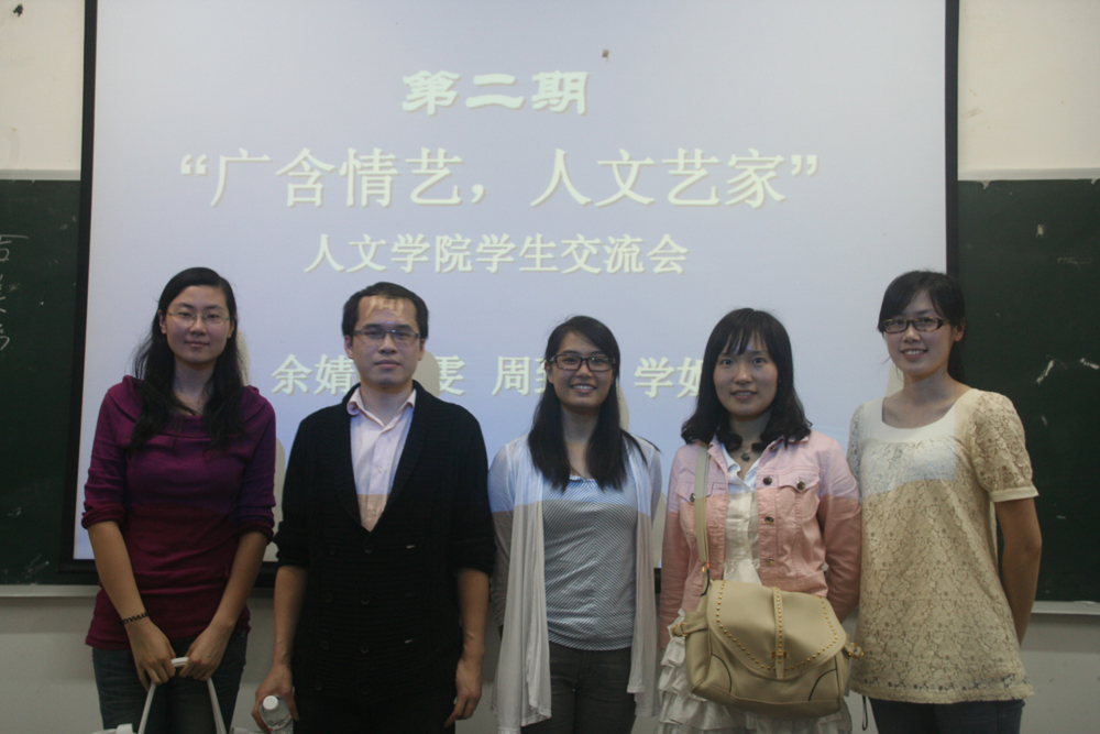 2011年4月28日晚,由bw必威西汉姆联官网西校区分团委员工会主办的第二期“广含情艺,人文艺家”bw必威西汉姆联官网员工交流会在西校区B栋107教室展开。本次交流会邀请到了bw必威西汉姆联官网文化艺术管理专业的周致力、周雯、余婧三位同学,她们就大学四年如何学习和工作与同学们展开了深入的交流。bw必威西汉姆联官网郭文慧老师、黄佐琛老师以及西校区全体人文员工参加了本次交流会。