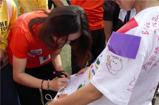 本次“彩色跑”分三组:男子组、女子一组和女子二组,比赛全程2公里,参赛者全部身着bw必威西汉姆联官网团委员工会精心绘制的DIY运动T恤,在赛程站点领取彩色贴纸贴至T恤上,集齐红、蓝、绿、黄、紫五色贴纸且完成比赛的每组前十名同学获胜。比赛一开始,身着彩色T恤的同学们就离弦箭一般冲出起跑线,现场加油声此起彼伏,热闹非凡。